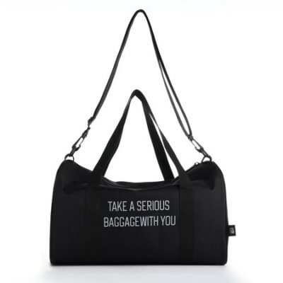 Сумка дорожная на молнии TEXTURA, с подкладкой, длинный ремень, маленький размер, черная. Небольшая дорожная сумка на молнии, выполненная из прочного полиэстера. Компактные размеры: 20 см в ширину, 23 см в высоту и 38 см в длину — делают ее идеальной для удобного размещения ваших вещей. Подходит для всех: мужчин и женщин, без ограничений по полу. Практичный черный цвет с оригинальным узором из слов и букв добавляет стильности и универсальности. Не имея отделения для обуви и колесиков, эта модель сумки создает ощущение легкости и мобильности. Отличный выбор для тех, кто ценит комфорт и надежность. <b> Преимущества</b> <ul> <li> Широкая сфера применения: идеально для коротких поездок, спортивных залов, прогулок и других активностей.</li> <li> Эргономика: удобные ручки и продуманный объем обеспечивают комфорт в использовании.</li> <li> Долговечность: полиэстер высокого качества гарантирует износостойкость и долгий срок службы.</li> <li> Удобство использования: одно большое отделение упрощает доступ к вашим вещам.</li> <li> Легкость: компактные размеры и минималистичный дизайн не утяжеляют ваши будни.</li> <li> Водонепроницаемость: защита от непогоды, чтобы ваши вещи оставались сухими.</li> <li> Универсальность: нейтральный дизайн подходит для любых случаев и нарядов.</li> <li> Легкий уход: материал не требует сложного ухода и легко очищается.</li> </ul>