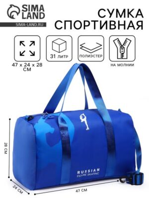 Главная » Аксессуары Сумка спортивная Просмотров 5 Сумка спортивная «RUSSIAN FIGURE SKATING», 47 x 28 x 24 см, синий. No brand