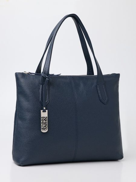 Сумка имеет одно большое отделение, внутри карман на молнии и карман для документов. Само изделие закрывается на молнию. Снаружи на задней стенке карман на молнии. Две ручки средней длины, высотой 20,5см. Материал: Натуральная кожа Флорида. Особоэластичная, мягкая на ощупь натуральная кожа с естественной лицевой поверхностью, отделанная итальянскими материалами, Размер: 400x330x85