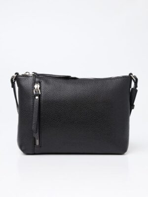 Стильная кросс-боди модель. Регулируемый ремень через плечо длиной 130 см. На передней и задней стенках вместительные карманы на молнии. Внутри одно отделение с открытым карманом и карманом на молнии.Материал: Натуральная кожа , Размер: 23x16x6