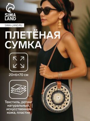 Сумка женская через плечо плетеная «Мандала», 20×6×70 см, ротанг, черно-белая. Погрузитесь в мир стиля и удобства с этой уникальной сумкой, которая станет вашим верным спутником в любых ситуациях. Ее дизайн сочетает в себе современные тенденции и природную элегантность, делая ее идеальным выбором для тех, кто ценит гармонию и практичность. Сумка выполнена из натурального ротанга, что придает ей легкость и экологичность, а в сочетании с искусственной кожей и текстилем создает неповторимый контраст. Черно-белая гамма подчеркивает ее универсальность, позволяя сочетать с любым образом — будь то прогулка по городу или отдых на природе. <ul> <li> <strong> Удобство и функциональность:</strong> длинный ремешок позволяет носить сумку через плечо или на плече, освобождая руки для других важных дел.</li> <li> <strong> Практичность:</strong> жесткий каркас обеспечивает сохранность вещей, а внутренний карман поможет организовать мелкие предметы.</li> <li> <strong> Стиль для каждого дня:</strong> повседневный дизайн с элементами этнического узора «Мандала» добавляет изюминку вашему образу.</li> <li> <strong> Летний акцент:</strong> легкие материалы и яркий дизайн делают сумку идеальным аксессуаром для теплого сезона.</li> <li> <strong> Долговечность:</strong> качественные материалы и продуманная конструкция гарантируют, что сумка будет радовать вас долгое время.</li> </ul> Эта сумка — не просто аксессуар, а выражение вашего вкуса и индивидуальности. Она станет надежным спутником в повседневной жизни, подчеркнет ваш стиль и добавит нотку свежести в любой образ. Выбирайте ее для себя или в подарок — и наслаждайтесь сочетанием красоты и практичности.