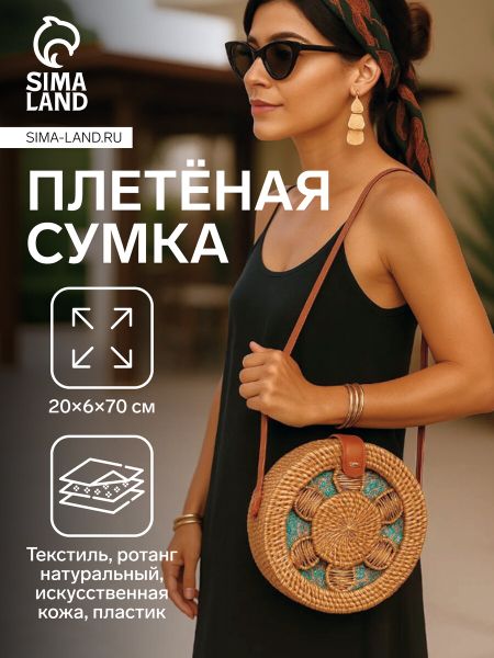 Сумка женская через плечо плетеная «Цветок», 20×6×70 см, ротанг. Стильная плетеная сумка из натурального ротанга — идеальный аксессуар для летнего отдыха и повседневного образа. Ее яркий дизайн и удобная форма подчеркнут вашу индивидуальность и добавят легкости в любой образ. <b> Особенности</b> <ul> <li> Материалы: сочетание натурального ротанга, искусственной кожи, текстиля и пластика обеспечивает долговечность и стильный внешний вид.</li> <li> Форма и размер: компактная модель среднего размера (20×6×70 см) с жестким каркасом сохраняет форму и удобна в использовании.</li> <li> Практичность: один внутренний карман для хранения мелочей и длинный ремешок для ношения через плечо.</li> <li> Застежка на кнопку обеспечивает безопасность ваших вещей.</li> </ul> <b> Для кого</b> Эта сумка станет отличным выбором для женщин и девушек, которые ценят удобство и стиль. Она подходит для прогулок, поездок на отдых или повседневного использования. <b> Почему именно эта модель?</b> Яркий разноцветный дизайн и натуральные материалы делают эту сумку уникальной. Она сочетает в себе легкость, практичность и эстетику, идеально дополняя летние образы. Коричневая фурнитура добавляет аксессуару изысканности.