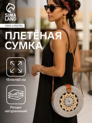 Сумка женская через плечо плетеная «Мандала», 15×6×60 см, ротанг. Погрузитесь в мир стиля и естественной красоты с этой уникальной плетеной сумкой, которая станет вашим идеальным спутником в летних приключениях. Ее изысканный дизайн, выполненный из натурального ротанга, сочетает в себе легкость, прочность и элегантность, делая ее не просто аксессуаром, а настоящим произведением искусства. Сумка среднего размера с жестким каркасом и длинным ремешком для ношения через плечо предлагает удобство и практичность. Ее бежево-серый оттенок с коричневой фурнитурой идеально вписывается в повседневный образ, добавляя нотку утонченности и гармонии. Застежка на кнопку обеспечивает надежность, а внутренний карман поможет сохранить порядок в мелочах. <ul> <li> <strong> Экологичность и натуральность:</strong> материал ротанг не только красив, но и безопасен для окружающей среды.</li> <li> <strong> Универсальность:</strong> подходит для прогулок, отдыха на природе или городских выходов.</li> <li> <strong> Комфорт:</strong> длинный ремешок позволяет носить сумку на плече или через плечо, освобождая руки.</li> <li> <strong> Стиль:</strong> плетеная текстура и этнический узор «Мандала» делают аксессуар уникальным и запоминающимся.</li> <li> <strong> Практичность:</strong> жесткий каркас сохраняет форму, а внутренний карман помогает организовать пространство.</li> </ul> Эта сумка — не просто аксессуар, а выражение вашего вкуса и любви к природе. Она станет идеальным выбором для тех, кто ценит комфорт, стиль и экологичность. Позвольте себе насладиться легкостью лета с этим прекрасным дополнением к вашему образу.