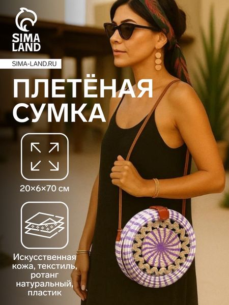 Сумка женская через плечо плетёная «Мандала», 20×6×70 см, ротанг, сиреневая