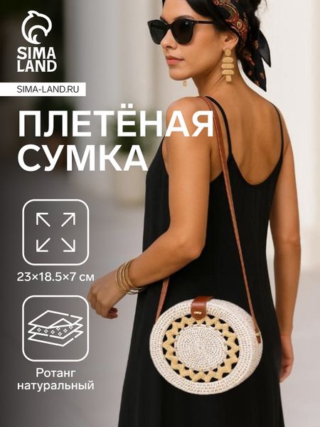 Сумка женская через плечо плетёная «Мандала», 23×18.5×7 см, ротанг, бежевая