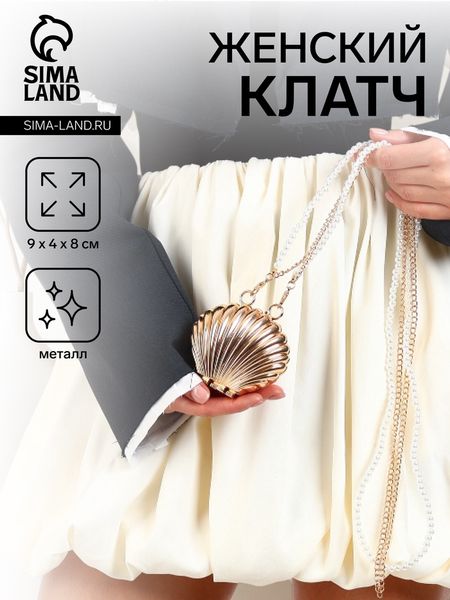 Сумка женская кросс-боди на цепочке, мини ракушка, золотой