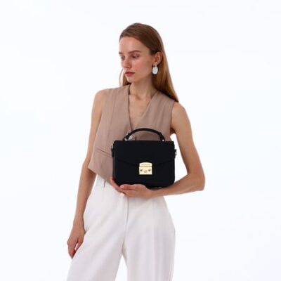 Сумка женская на клапане TEXTURA, маленький размер, цвет черный. Эта изысканная маленькая сумка от TEXTURA — не просто аксессуар, а настоящая находка для тех, кто ценит стиль и практичность. Воплощение элегантности в минимализме, она выполнена из качественной искусственной кожи, что делает ее не только эстетичной, но и долговечной. Черный цвет идеально впишется в любой гардероб, добавляя нотку утонченности к вашему образу. Сумка оснащена клапаном и металлической фурнитурой золотого цвета, что придает ей завершенный и элегантный вид. Внутри предусмотрен один удобный карман, куда можно положить самые необходимые вещи. Ее жесткий каркас обеспечивает сохранность формы, даже если в нее положить множество мелочей. <ul> <li> <strong> Компактность и удобство:</strong> размеры сумки позволяют взять ее с собой куда угодно, не теряя при этом функциональности. Размеры: 23 x 6 x 17 см.</li> <li> <strong> Многофункциональность:</strong> регулируемый ремешок позволяет носить сумку как на плече, так и в руках.</li> <li> <strong> Качество материалов:</strong> искусственная кожа обеспечивает износостойкость и устойчивость к погодным условиям.</li> <li> <strong> Изысканный дизайн:</strong> сочетание черного цвета и золотистой фурнитуры делает сумку универсальной для любого образа.</li> </ul> С этой сумкой от TEXTURA вы всегда будете на высоте, будь то деловая встреча или вечерняя прогулка. Она станет верным спутником, подчеркивающим вашу индивидуальность.