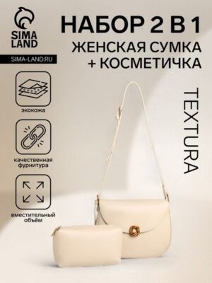 Сумка женская на клапане TEXTURA, средний размер, цвет молочный