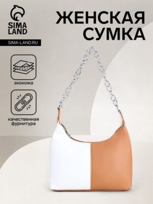 Сумка женская на молнии, цвет белый/коричневый