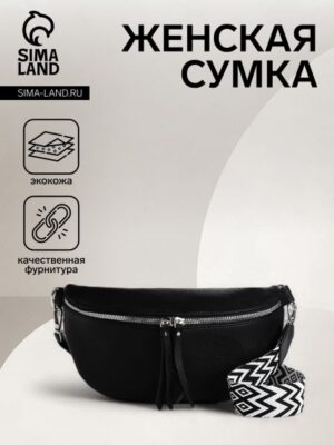 Сумка женская на молнии, цвет черный. Если вы хотите быть стильным и запоминающимся, тогда данная сумка на длинном ремне — идеальный выбор! Ее особенность в необычном и акцентном дизайне, который точно привлечет внимание окружающих. Будьте в тренде и выделяйтесь с нашей сумкой, которая станет незаменимым аксессуаром в гардеробе. Подчеркните свою индивидуальность!