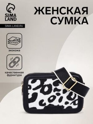 Сумка женская на молнии, цвет чёрный/белый/леопард
