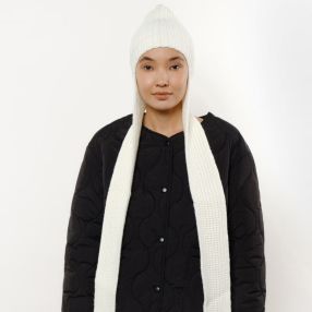 Главная » Аксессуары Ушанка-шарф UNU вязаная молочная Просмотров 8 Состав: 30% шерсть, 70% акрил Подойдет для ношения осенью и зимой. Произведена в России UNU