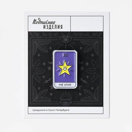 Размер упаковки: 55х68Размер без упаковки: 15,5х25Материал: сплав цинка/никеля с покрытием эмалиМеханизм крепления: бабочкаСерия: ТароСтрана производитель: Китай