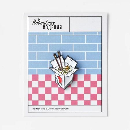 Размер упаковки: 55х68Размер без упаковки: 20х22,3 ммМатериал: сплав цинка/никеля с покрытием эмалиМеханизм крепления: бабочкаСерия: ЕдаСтрана производитель: Китай