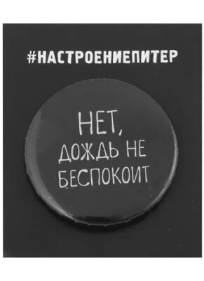 Значок круглый СПб Нет, дождь не беспокоит (черный) (металл) (37мм)