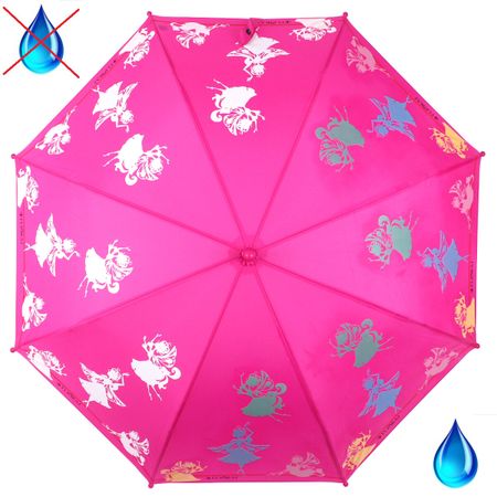 Дизайнерский необычный детский зонт-трость «Flioraj» с увеличенным куполом из коллекции «Волшебной Иллюзии» с проявляющимися рисунками от попадания воды, порадует малышей, девочек, подростков и взрослых. А еще зонт подростковый может быть раскраской, просто проведите по картинкам мокрой кисточкой или ладонью. Система антиветер, большой купол, гибкие и прочные спицы из фибергласса с безопасными наконечниками и простым механизмом открытия, защитят в любую непогоду. Зонт детский для девочек имеет легкий вес, удобную для ребенка ручку и легко складывается. Зонтик выполнен из качественных, безопасных и нетоксичных материалов. Есть свисток. Перед тем как сложить зонт, его необходимо тщательно высушить, до момента, когда картинки станут белыми.