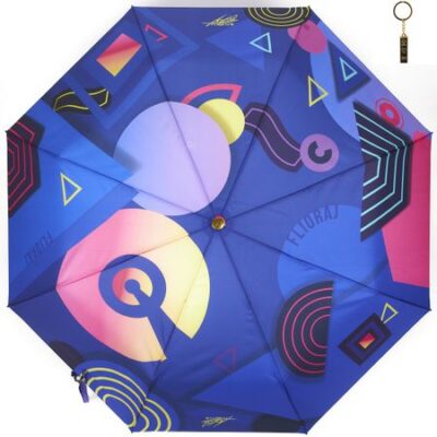 Дизайнерский женский зонт от бренда «Flioraj». Система «Антиветер». Полный автомат (супер автомат) в 3 сложения. Открывается и закрывается посредством кнопки, фиксируется вручную. Большой купол из качественного эпонжа с пропиткой от влаги и грязи. Ткань красится ручным способом. Усиленный каркас: алюминий, анодированная сталь, фибергласс. Эргономичная пластиковая «Soft Touch» ручка с хлястиком. Фурнитура с винтажной позолотой, которой инкрустированы элементы зонта. Есть Чехол и брелок в виде золотого слитка.