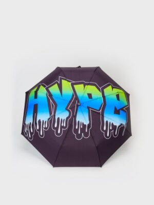 Оригинальный зонт-автомат для мальчика-подростка. Принт HYPE во весь купол — вызов обществу. Идеально подходит к резиновым сапогам из коллекции. Брендированная ручка. Длина 28 см, диаметр купола 97 см. Механизм складывания — автомат.
