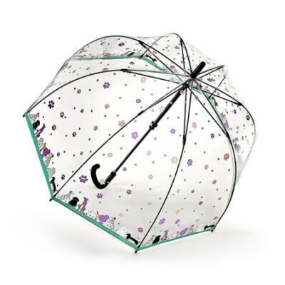 Прозрачный женский зонт трость от английского бренда Fulton с большим и глубоким куполом поможет почувствовать себя настоящей королевой. Знаменитая модель «птичья клетка» с изысканным принтом в виде собачек впишется в любой современный образ и добавит восторженных взглядов окружающих. У женского зонта стальной стержень и 8 крепких фибергласовых спиц. Материал купола — прозрачный высококачественный полихлорвинил. Диаметр купола зонта — 84см, что оставляет владелице прекрасный обзор, и в то же время надежно защищает от дождя голову и плечи. Длина в сложенном виде — 94 см. Вес модели 530 гр.