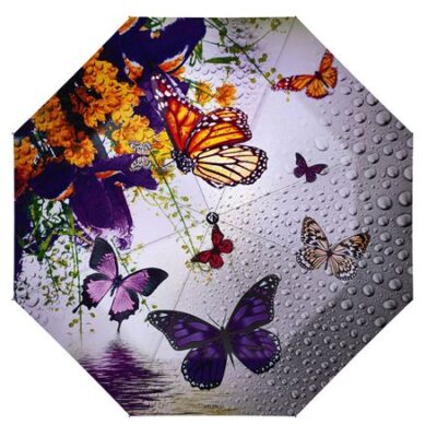 Элегантный женский зонт с принтом от российского бренда «Flioraj» (Флиораж), премиальная авторская коллекция. Полный автомат, 3 (три) сложения. Материал купола — качественный сатин с пропиткой от влаги и грязи. Картина цельная на тему "Пробуждение бабочки, цветы" — красивые цветы и бабочки на сером зонте (такая же уменьшенная на чехле). Ткань мягкая на ощупь, из переплетенных нитей. Гибкие 8 (восемь) спиц сделаны из фибергласса с карбоновыми вставками. Особенность: наличие пружин в каждой спице, это увеличивает прочность и срок эксплуатации. Антиветер (система, не позволяет зонту сломаться при ветре). Зонт для женщин, повышенной надежности. Большой купол 116 см (по спице). Эргономичная прорезиненная ручка "Soft Touch" с хлястиком. Усиленный каркас: алюминий, анодированная сталь, фибергласс. Заклепки из нержавеющей стали. Зонт легко помещается в дамской [сумочке]. Имеется тематический [чехол]. После намокания, зонт сушить в открытом виде! Оригинальный подарок для женщин.