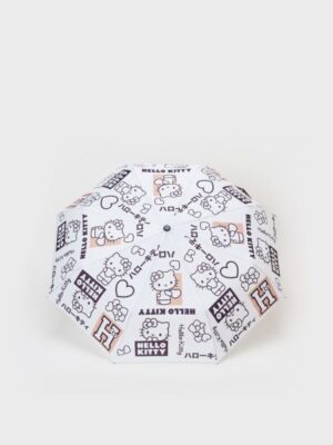 Зонт-автомат для девочки-подростка. Фирменный принт с HELLO KITTY. Брендированная ручка. Длина 28 см, диаметр купола 97 см. Механизм складывания — автомат.