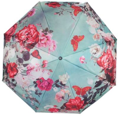 Дизайнерский элегантный женский зонт с принтом от бренда «Flioraj» (Флиораж). Картина на весь купол. Система «Антиветер». Полный автомат (супер автомат) в 3 сложения. Открывается и закрывается посредством кнопки, фиксируется вручную. Большой купол из качественного сатина с пропиткой от влаги и грязи. Усиленный каркас: алюминий, анодированная сталь, фибергласс. Эргономичная прорезиненная «Soft Touch» ручка с хлястиком. Есть чехол.