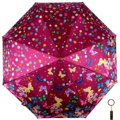 Дизайнерский элегантный женский зонт от бренда «Flioraj» с системой «Антиветер». Полный автомат (супер автомат) в 3 сложения. Открывается и закрывается посредством кнопки, фиксируется вручную. Большой купол из качественного эпонжа с пропиткой от влаги и грязи. Ткань красится ручным способом. Усиленный каркас: алюминий, анодированная сталь, фибергласс. Эргономичная пластиковая «Soft Touch» ручка с хлястиком. Фурнитура с винтажной позолотой, которой инкрустированы элементы зонта. Есть Чехол и брелок в виде золотого слитка. Авторская застежка.