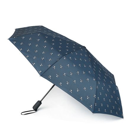 Женский зонт-автомат благородного синего цвета для любителей собачек. Зонт с большим куполом и комфортной нескользящей ручкой. Ветроустойчивый каркас из 8 алюминиевых спиц с элементами из фибергласса