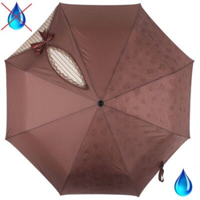 Элегантный женский зонт "Кокетка" от бренда «Flioraj» (Флиораж), премиальная авторская коллекция. Полный автомат (открытие, закрытие, доводка рукой), 3 (три) сложения. Материал купола — качественный полиэстер с пропиткой от влаги и грязи. Однотонный коричневый зонт. Купол и чехол из двух материалов с кружевами и накладным бантом. От попадания воды проявляются розы! Ткань мягкая на ощупь, из переплетенных нитей. Гибкие 8 (восемь) спиц сделаны из фибергласса с карбоновыми вставками. Особенность: наличие пружин в каждой спице, это увеличивает прочность и срок эксплуатации. Антиветер (система, не позволяет зонту сломаться при ветре). Зонт для женщин, повышенной надежности. Большой купол 116 см (по спице). Эргономичная ручка с хлястиком. Зонт легко помещается в дамской [сумочке]. Имеется тематический [чехол]. Зонт перед тем как закрыть необходимо тщательно высушить в открытом виде! Оригинальный и элегантный подарок для женщин.