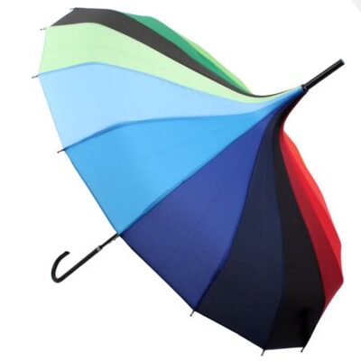 Элегантный дизайнерский женский зонт-трость «Китайская Пагода» от бренда «Flioraj» (Флиораж). Механика. Система «Антиветер». Усиленный каркас: алюминий, анодированная сталь, фибергласс. Оригинальный конусообразный купол Радуга из качественного эпонжа, с пропиткой от влаги и грязи. Эргономичная кожаная ручка крюк.