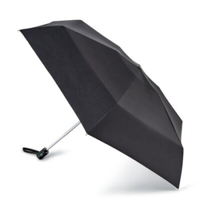 Компактный плоский зонт в 4 сложения с большим куполом, черный, автомат<br> Плоский и короткий зонт. Занимая минимум места, раскроет над вами в нужный момент достаточно большой купол. Рукоять покрыта нескользящим материалом, кнопка механизма удобно расположена под пальцем. Чехол на впитывающей подкладке, достаточно хорошо защищающей от капель влаги, остающихся на куполе. Хороший вариант дежурного зонта для всей семьи. У модели ветроустойчивая конструкция.
