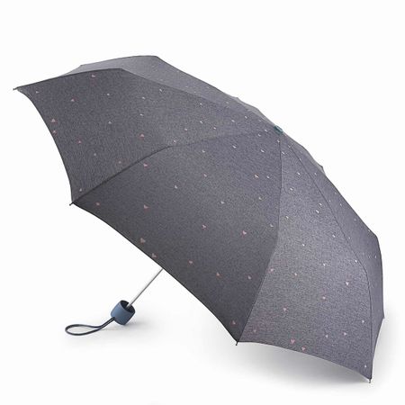 Нежные сердечки на джинсовом фоне – вечный день всех влюбленных. С сиреневато-розовой гаммой идеально сочетаются сизые ручка, навершие и шнурок – деликатные акценты, поддерживающие правило гармонии трех цветов. В этом зонтике соразмерно все: он легкий, узкий, с большой удобной рукояткой, у которой нескользкое покрытие софт тач и есть выемка, в которую заправляются спицы, когда зонтик закрыт. Каркас ветроустойчивый. Логотипы присутствуют на навершии и на ручке.