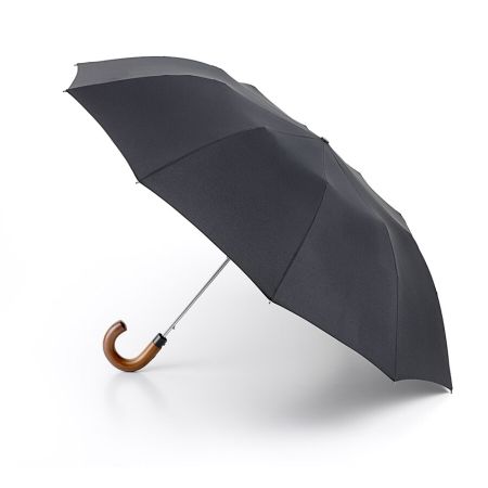 Классический мужской черный зонт, полуавтомат<br> Зонт с увеличенным и дополнительно усиленным куполом – у этой модели 10 спиц вместо стандартных 8. Идеальная модель для тех, кто не задается целью найти легкий и короткий складной зонт-«механику», а скорее обрадуется старому доброму увесистому и основательному полуавтомату. У модели ветроустойчивая конструкция. Рукоять выполнена из массива дерева коричневого цвета и благодаря натуральности материала невероятно комфортно ощущается ладонью.