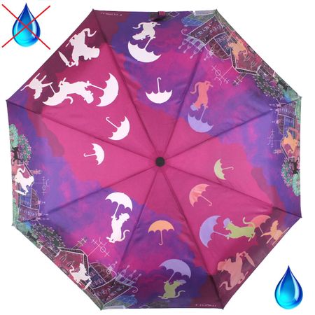 Элегантный женский зонт от российского бренда «Flioraj» (Флиораж), премиальная авторская коллекция. Полный автомат, 3 (три) сложения. Материал купола — качественный полиэстер с пропиткой от влаги и грязи. Картина "IMAGINARY" — на фиолетовом зонте принт "дома" и белые коты, меняющие цвет от попадания воды! Ткань мягкая на ощупь, из переплетенных нитей. Гибкие 8 (восемь) спиц сделаны из фибергласса с карбоновыми вставками. Особенность: наличие пружин в каждой спице, это увеличивает прочность и срок эксплуатации. Антиветер (система, не позволяет зонту сломаться при ветре). Зонт для женщин, повышенной надежности. Большой купол 116 см (по спице). Эргономичная прорезиненная ручка "Soft Touch" с хлястиком. Усиленный каркас: алюминий, анодированная сталь, фибергласс. Заклепки из нержавеющей стали. Зонт легко помещается в дамской [сумочке]. Имеется тематический [чехол]. Перед закрытием зонт необходимо тщательно высушить в открытом виде! Оригинальный подарок для женщин.