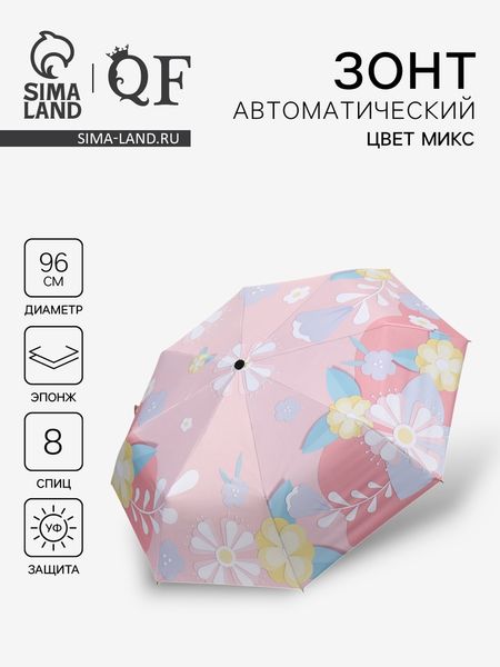Зонт автоматический «Цветочная поляна», 3 сложения, 8 спиц, R=48/55 см, d=96 см, МИКС