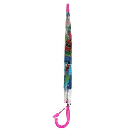 Зонт ИГРАЕМ ВМЕСТЕ UM50T-HGVG. Детский зонт «Хаги Ваги» ТМ «Играем вместе» превратит даже самый дождливый день в радостный:<br> — красочный дизайн с забавными персонажами<br> — прозрачный материал<br> — защита от солнечных лучей и осадков<br> — удобная рукоять<br> — легко раскладывается<br> — полуавтомат<br> — свисток<br> <br> Зонт-трость легко раскрывается при нажатии на кнопку, складывается вручную. Рукоять имеет удобную форму, а каркас выполнен из облегченных материалов, поэтому держать зонт ребенку не составит особого труда. В целях безопасности концы спиц, наконечник зонтика, ручка и фиксатор выполнены из пластмассы и не травмоопасны. К рукояти зонта прикреплен свисток, который можно использовать в экстренной ситуации для подачи сигнала или просто для игры.<br> <br> Радиус: 50 см. Размер в сложенном виде: 4 x 8 x 67 см.<br> Материал: пластмасса + ПВХ + металл.<br> Рекомендовано детям от 3-х лет.