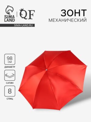Зонт механический «Однотон», сатин, 4 сложения, 8 спиц, R=49/56 см, d=98 см, красный. Потрясающий зонт будет Вашим верным помощником в дождливую погоду. Система данного зонта – механическая. От других моделей отличается прочностью, долговечностью, а также простотой в использовании. Размеры зонта обеспечивают комфорт и защиту. Радиус внутри зонта (до ручки) = 49 см, поверху = 56 см. Ручка удобно лежит в руке. Купол зонта состоит из эпонжа. Материал устойчив к внешнему воздействию. Достаточно быстро сохнет. Влага не задерживается и стекает вниз. Такие зонты пользуются наибольшей популярностью. Зонт – считается практичным подарком по любому случаю. Пригодится для любого возраста. Защитите себя и своих близких от непогоды!