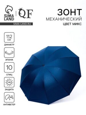 Зонт механический «Однотон», эпонж, 4 сложения, 10 спиц, R=56/63 см, d=112 см, МИКС