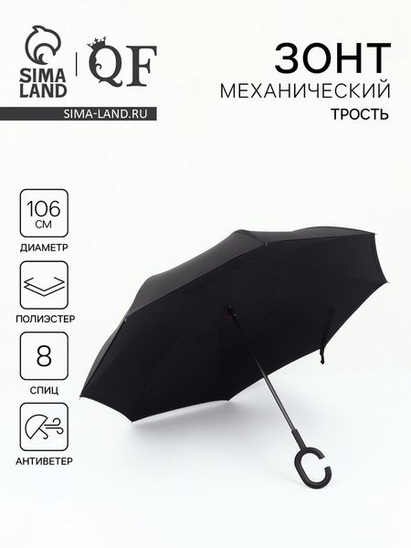 Зонт — наоборот «Однотон», механический, 8 спиц, R=53/61 см, d=106 см, чёрный
