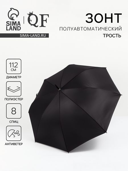 Зонт — трость полуавтоматический «Однотон», 8 спиц, R=56/67 см, d=112 см, чёрный