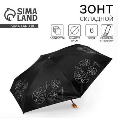 Зонт женский механический «Тропические листья», 6 спиц, складывается в размер телефона. Для современных модниц, стремящихся подчеркнуть свою изящность и вкус, очень важно подобрать подходящий к их стилю аксессуар. Уникальные зонты, разработанные нашей компанией, станут отличным дополнением выбранного образа. Зонт – аксессуар для искушенных модой представительниц прекрасного пола. Он станет идеальным спутником для девушек, предпочитающих аксессуары в классическом стиле. С таким зонтом их обладательницам не будет страшен даже самый сильный дождь, а удобная конструкция, позволит значительно продлить срок эксплуатации.