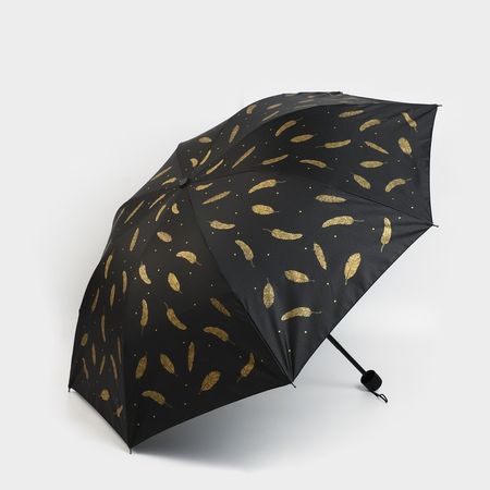 Зонт женский механический «Золотые перья», 8 спиц, d=95, чёрный