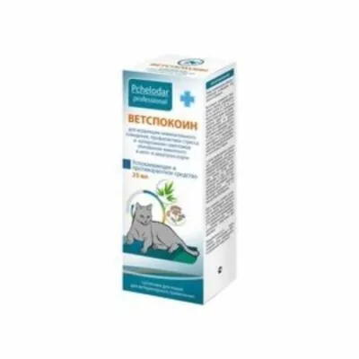Внимание! Данный товар отпускается по рецепту. Возможен только самовывоз при наличии рецепта.Лекарственная форма Суспензия для приема внутрь. Фармакотерапевтическая группа Комбинированное седативное лекарственное средство. Фармакологические свойства Активные действующие вещества препарата ВетСпокоин обладают мягким седативным, спазмолитическим, анксиолитическим (ослабляющим чувство страха), стрессопротекторным, адаптогенным и болеутоляющим действием. Антиоксиданты, входящие в состав препарата, предупреждают развитие стресса и укрепляют иммунную систему животного. Фенибут облегчает ГАМК-опосредованную передачу нервных импульсов в ЦНС, оказывает психостимулирующее, антиагрегантное и антиоксидантное действие. Прометазин является антигистаминным, противорвотным, противозудным, снотворным и местноанестезирующим средством. Экстракт пустырника оказывает седативное, успокаивающее, гипотензивное и кардиотоническое действие. Экстракт валерианы оказывает спазмолитическое и седативное действие, уменьшает возбудимость ЦНС, снижает тонус гладких мышц. Пчелиное маточное молочко оказывает адаптогенное, кардиопротекторное, иммуностимулирующее действие, а также улучшает состояние центральной и периферической нервной системы, повышает усвоение глюкозы и кислорода головным мозгом. Показания к применению