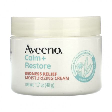 Описание Мгновенно успокаивает покрасненияБренд, рекомендованный дерматологамиУспокаивающий пиретрум + овесРекомендовано дерматологами более 70 лет Увлажняющий крем Aveeno® Calm + Restore Redness Relief помогает восстановить водный барьер кожи, заметно уменьшая покраснение и раздраженную сухую кожу. Содержит керамиды и витамин B5.Уход за кожейУспокаивающий пиретрум + питательная овсяная формула успокаивает раздраженную, сухую кожу, мягко уменьшая покраснение. Данная формулаБез отдушкиБез фталатовГипоаллергенный продуктНежное средство для ежедневного использованияБез парабеновНе способствует возникновению комедоновПротестировано дерматологамиПротестировано на чувствительной коже Рекомендации по применению Нанесите крем на все очищенное лицо. Достаточно мягкий для ежедневного использования.