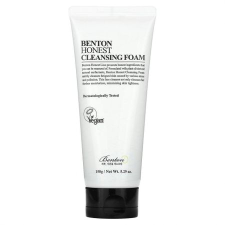 Протестировано дерматологами Этичный продукт Линия средств Benton Honest Line представляет честные ингредиенты, в которых вы можете быть уверены. Очищающая пенка Benton Honest Cleansing Foam, созданная на основе натуральных поверхностно-активных веществ из пальмового масла, мягко очищает усталую кожу, на которую влияют стрессы и загрязнения. Это очищающее средство для лица не только очищает, но и дополнительно увлажняет, уменьшая стянутость кожи.