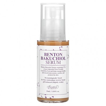 Описание Протестировано дерматологами Антиоксидантная активность подтверждена в лабораторных условияхpH-сбалансированный (слабокислый)Сыворотка Benton Bakuchiol, содержащая 2,5% чистого бакучиола из плодов псоралеи корилифолистной, помогает сохранить кожу здоровой и гладкой, успокаивает и защищает кожу. Рекомендации по применению Встряхнув сыворотку, равномерно нанесите необходимое количество на кожу и легкими похлопывающими движениями до полного впитывания.