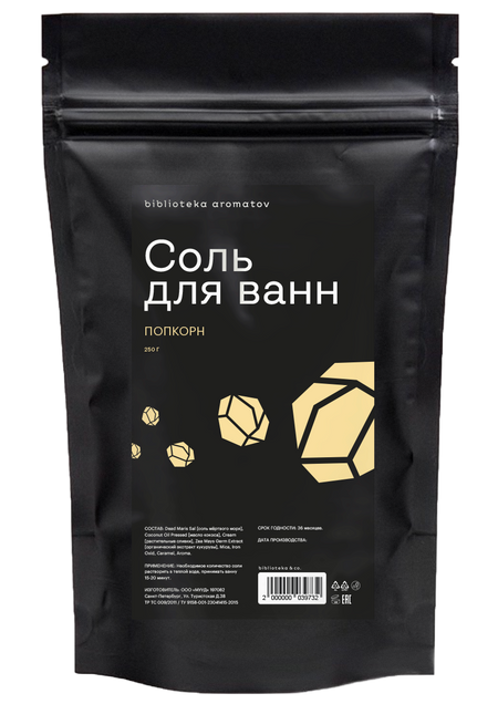 Расслабиться в ванной с ведёрком любимого попкорна? Легко! Воздушный аромат соли для ванн окутает карамельными грёзами, экстракт кукурузы в составе успокоит тело: он способствует восстановлению и питанию кожи, защищает от воздействия извне. Масло кокоса сделает её мягче, горячие ароматные пары раскроют поры и отставят сладкий шлейф.Maris Sal [cоль Мёртвого моря], Coconut Oil Pressed [масло кокоса], Сream [растительные сливки], Zea Mays Germ Extract [органический экстракт кукурузы], Mica [слюда], Iron Oxide [оксид железа], Caramel [карамель], Aromа [парфюмерная композиция].