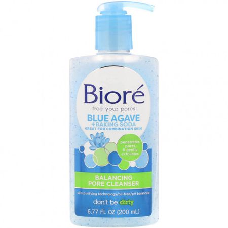 Очистите поры! Прекрасно подходит для комбинированной кожи Проникает в поры и мягко отшелушивает Технология очистки кожи, не содержит масел, сбалансированный уровень рН Пусть ваша кожа сияет чистотойЭто давно пора признатьКомбинированная кожа сложна в уходе, поскольку она сухая на одних участках и жирная на других. (Привет, Т-зона!)Все, что вам нужно — это глубокая очистка пор, не затрагивающая сухие участки кожи.Что делает наше средствоБалансирующее средство для очистки пор от Biore ухаживает и восстанавливает баланс комбинированной кожи, глубоко очищая и удаляя грязь и жир из пор. Эта формула с натуральным экстрактом голубой агавы в сочетании с проверенной временем пищевой содой способствует глубокой очистке, восстановлению и отшелушиванию кожи, ее разглаживанию и выравниванию баланса. Содержит натуральный экстракт голубой агавы, известный своими успокаивающими и восстанавливающими свойствами Содержит соду, известную своими способностями к глубокому очищению Гипоаллергенно Протестировано дерматологами