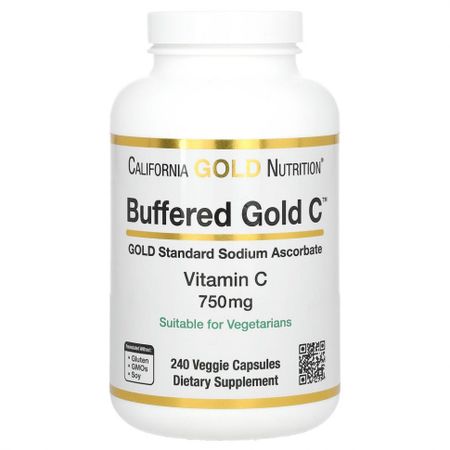 California Gold Nutrition®, Buffered Gold C, некислый буферизованный витамин CСодержит аскорбат натрия, соответствующий классу Gold Standard USPРастительные капсулы TapiOgels™ для сохранения качества и эффективностиПодходит для вегетарианцев и вегановПродукт не содержит глютена, ГМО и соиПроизводится на предприятии, которое имеет регистрацию текущей надлежащей производственной практики (cGMP) и проходит независимые проверкиГарантия 100% Gold Guarantee