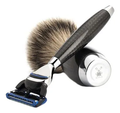Набор Edition No1 (помазок, карбон + бритва Fusion, карбон + подставка для бритвенного станка, хром)